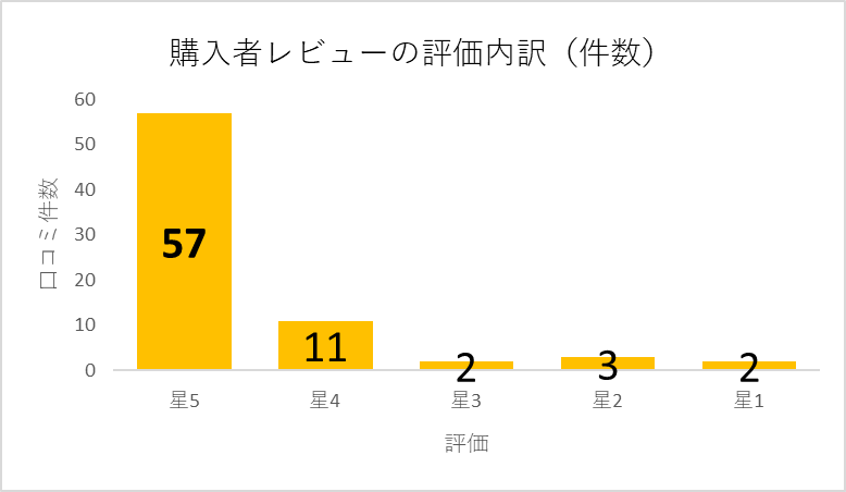 全75件のうち約9割にあたる68件が星4以上の高評価を付けています。